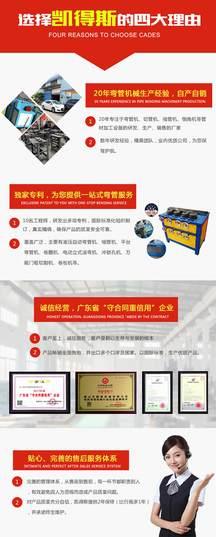 佛山市圆美机械有限公司是一家专业从事管类加工设备生产的公司、公司位于中国最具经济实力和发展活力的广东省珠江三角洲中心腹地,全国先进制造业基地——佛山市澜石镇。本公司是一家集研发、设计、制造、销售、服务为一体的现代化高新技术企业,拥有各项专利达十余项,公司拥有大批经验丰富的技术人员、经广大员工不断的努力,“Kaydes凯得斯”牌机械现已成为管制类机械设备行业的著名品牌,一直被模仿、从未被超越......